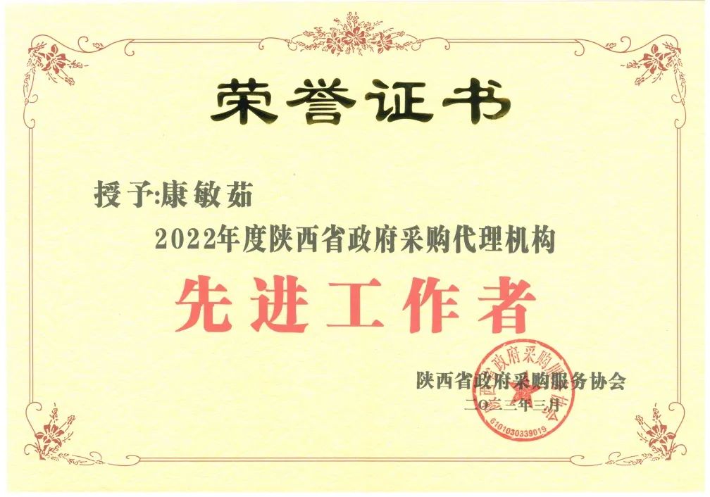 2022年度陜西省政府采購(gòu)代理機(jī)構(gòu)先進(jìn)工作者