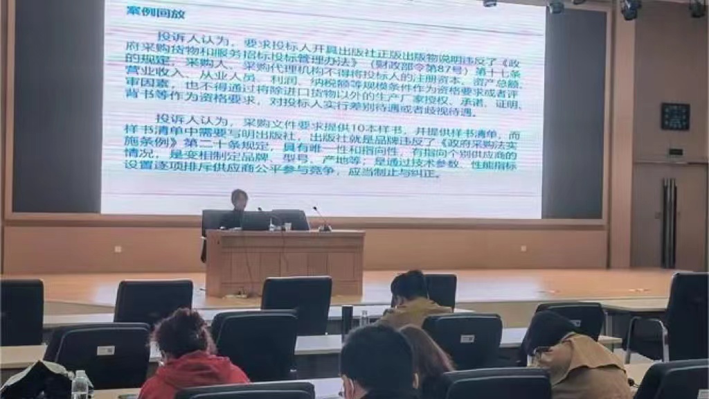 本次培訓(xùn)由我公司招標(biāo)部總監(jiān)康敏茹作為主講人。培訓(xùn)主要從:采購人系統(tǒng)操作全流程、合同備案、質(zhì)疑和投訴易發(fā)生原因及處理、投標(biāo)中易串標(biāo)廢標(biāo)點(diǎn)等四個方面進(jìn)行了深入細(xì)致的講解,對大家遇到的難點(diǎn)問題進(jìn)行了現(xiàn)場答疑。